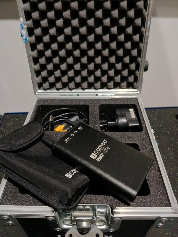 Für die iDMX® APP benötigst Du das Cameo iDMX® CORE Interface. Dieses akkubetriebene WLAN-Gerät beherbergt einen W-DMX™-Transmitter mit einer Reichweite von bis zu 300 m auf dem 2,4- GHz-Band. Damit steuerst Du sowohl reguläre DMX- als auch W-DMX™-fähige Scheinwerfer zuverlässig über die App.