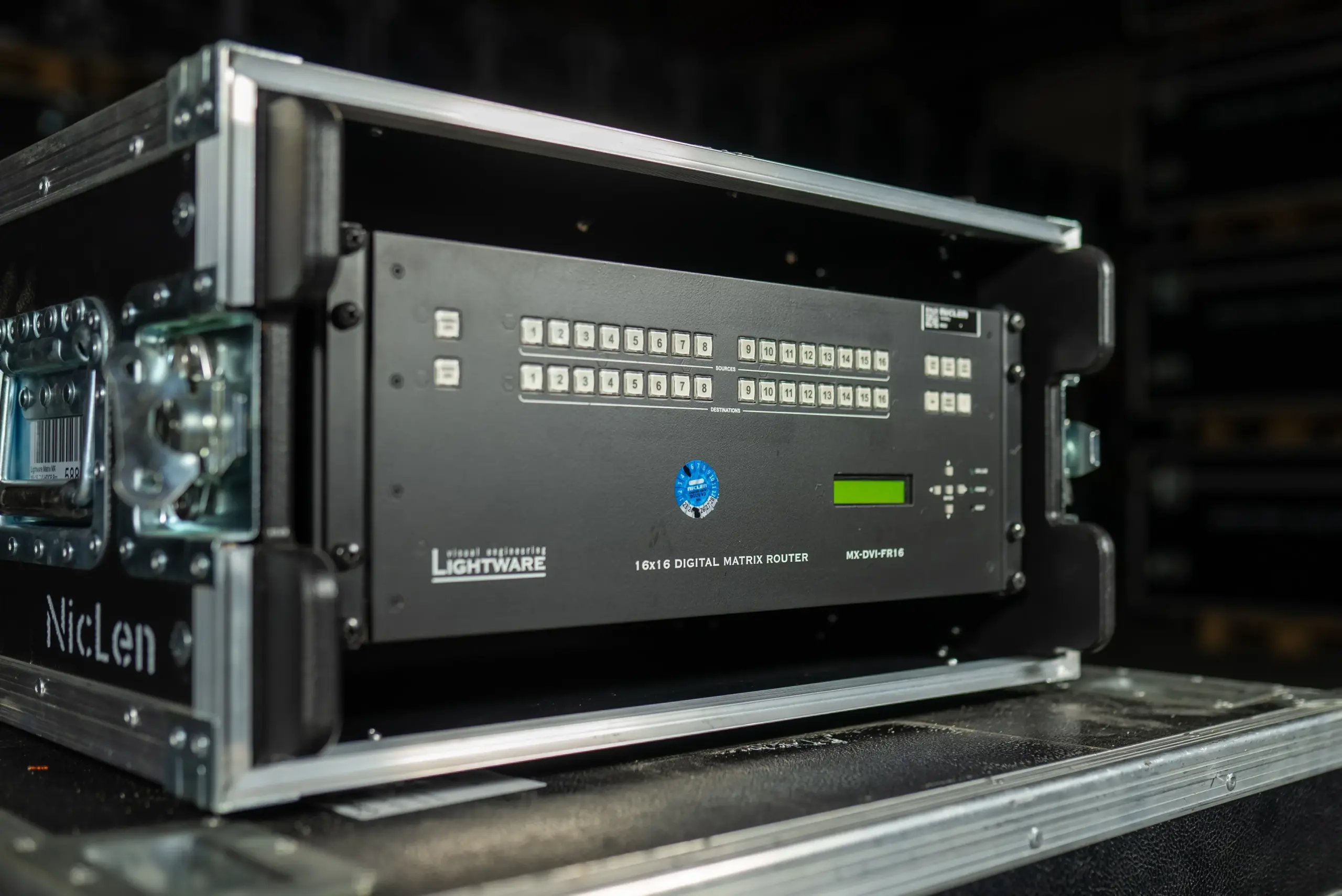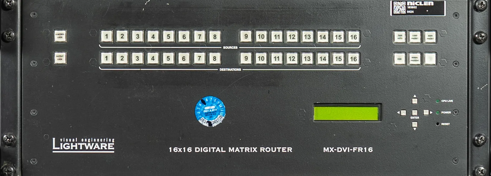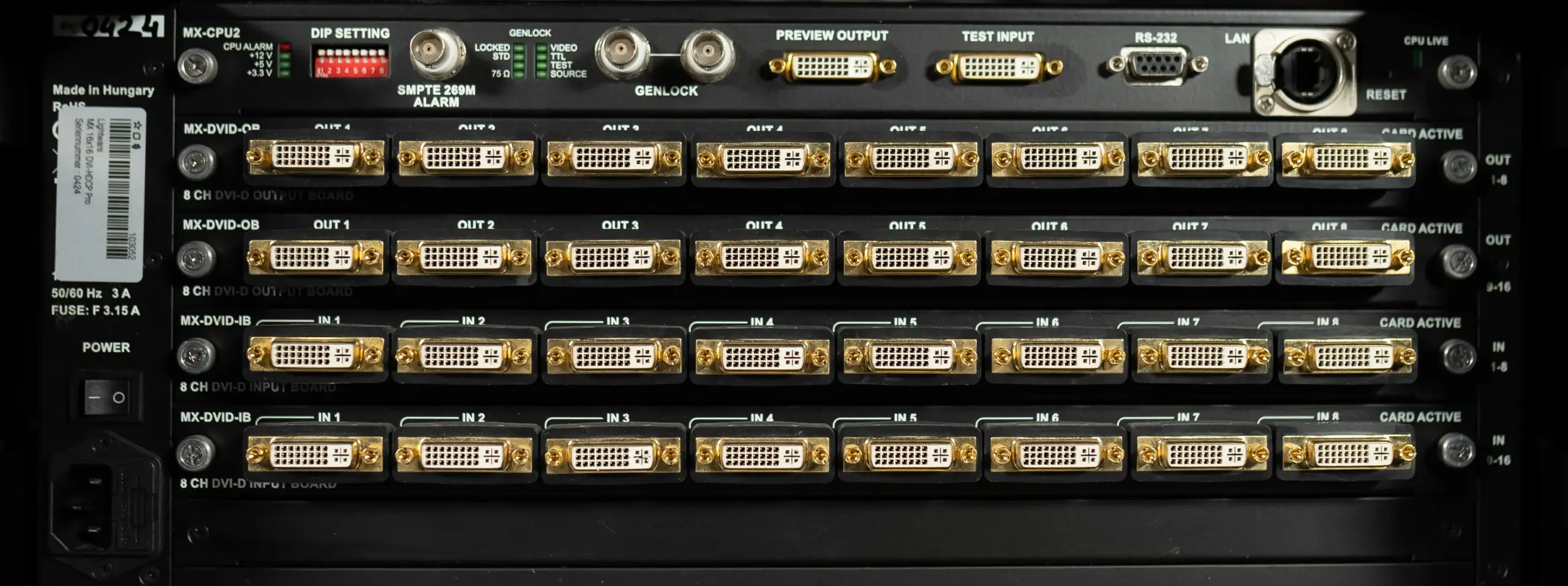 Der MX-DVI-FR16 ist ein leistungsstarker, modular erweiterbarer DVI 1.0- und HDMI 1.3-kompatibler Matrix-Switcher mit bis zu 16 Eingängen und bis zu 16 Ausgängen.